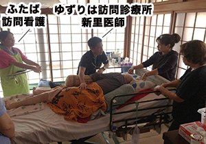 これまでの在宅での看取りとなったケースは、家族支援を含め、「親戚や友達も大勢きて周りを気にする事なく過ごす事ができた」「いつも通りの日常がおくれた」「大好きな湯ぶねに入れてよかった」「長い間生きてきたが、この病気を患うことで、君らと出会えてよかった」「在宅看取りで良かった。」との声をいただきました。